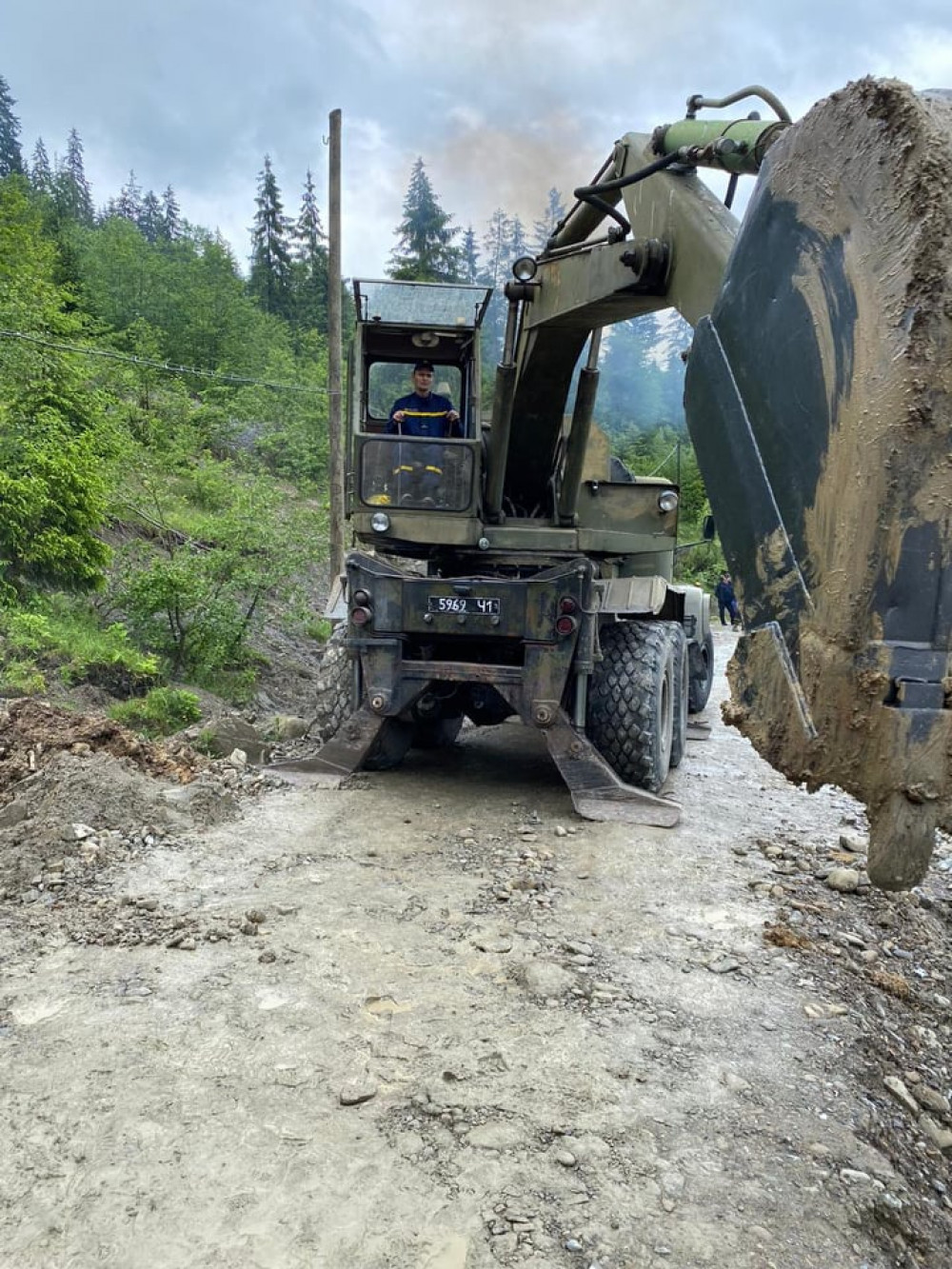 Для надання допомоги по розчищенню зсуву ґрунту залучено екскаватор ЕОВ-4421(Краз) та 3 осіб від Аварійно-рятувального загону спеціального призначення Управління ДСНС в області, а також 1 екскаватор та 2 працівники Верховинської ДЕД.