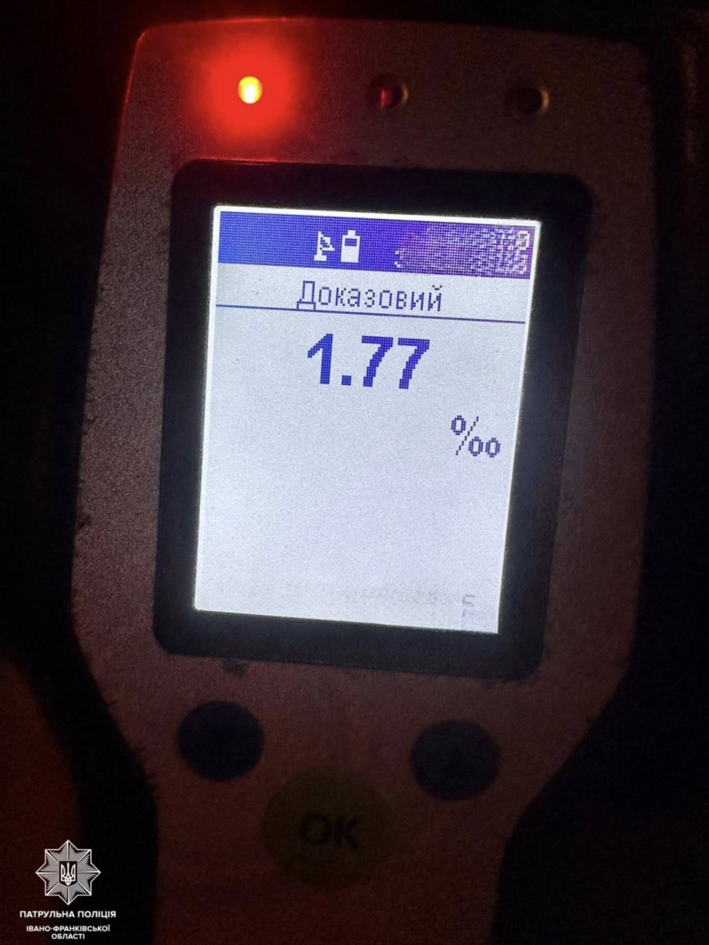 Під час спілкування з 32-річною кермувальницею Peugeot інспектори виявили ознаки алкогольного сп’яніння. Освідування підтвердило — у її крові 1.77 проміле алкоголю.