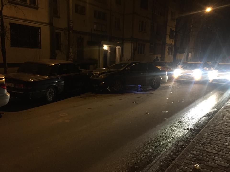 Автомобіль "Toyota" у міжбудинковому проїзді не справився з керуванням та врізався в припарковані авто. Як наслідок, окрім його автівки пошкодження отримали "Тойота", "Таврія", "Волга" та "Сітроен".