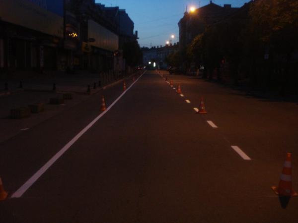 Цієї ночі була нанесена основна частина нової розмітки на вул. Новгородській.