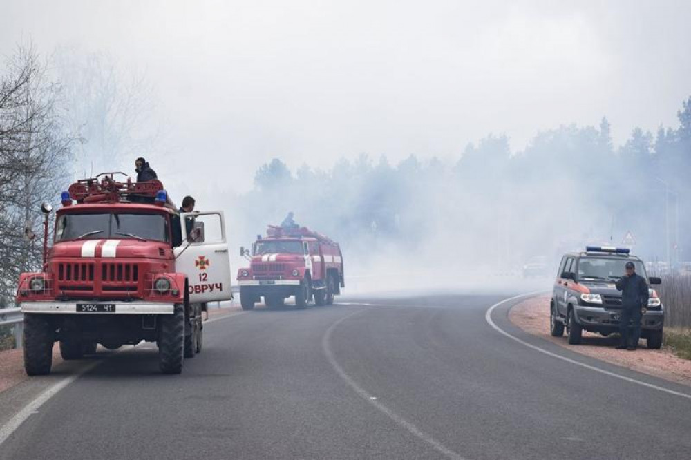 Станом на 15 год. 19 квітня силами ДСНС надається допомога працівникам лісгоспів на території 4 лісових господарств (ДП «Овруцьке ЛГ», «Овруцьке СЛГ», «Словечанське ЛГ» та «Словечанський лісгосп АПК») щодо гасіння окремих осередків тління трав'яного настилу, пеньків та деревини. Залишається 9 осередків горіння, з яких 5 локалізовані, а на 4 осередках продовжуються роботи щодо обмеження їх розповсюдження.