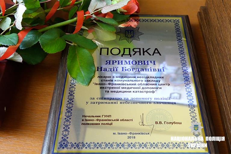 «Завдяки медпрацівникам злочинця затримано і не допущено аби він завдав шкоди життю та здоров’ю оточуючим. І так склалося, це просто неймовірно, дуже нестандартна ситуація: він не знав ні української, ні російської мови і серед вас знайшлася людина, яка спілкувалася з ним англійською і цим вдалося тримати його у відносній рівновазі. Щире спасибі Вам за вашу роботу і активну громадську позицію і безпосередню участь у затриманні небезпечного злочинця», - сказав начальник Володимир Голубош та вручив медпрацівницям Подяки.