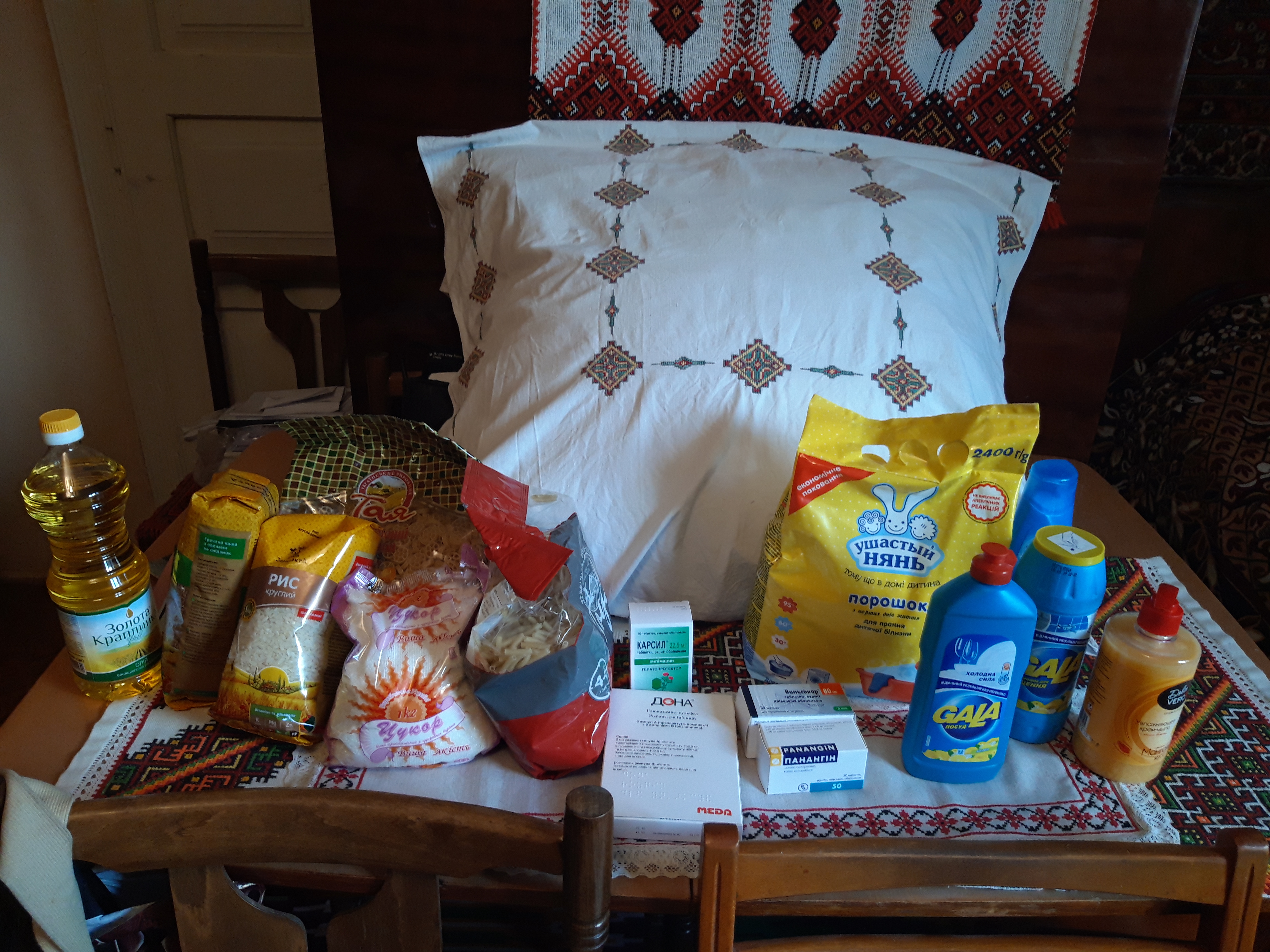 Пан Ілля отримав від Карітасу необхідні ліки, продукти харчування та миючі засоби.