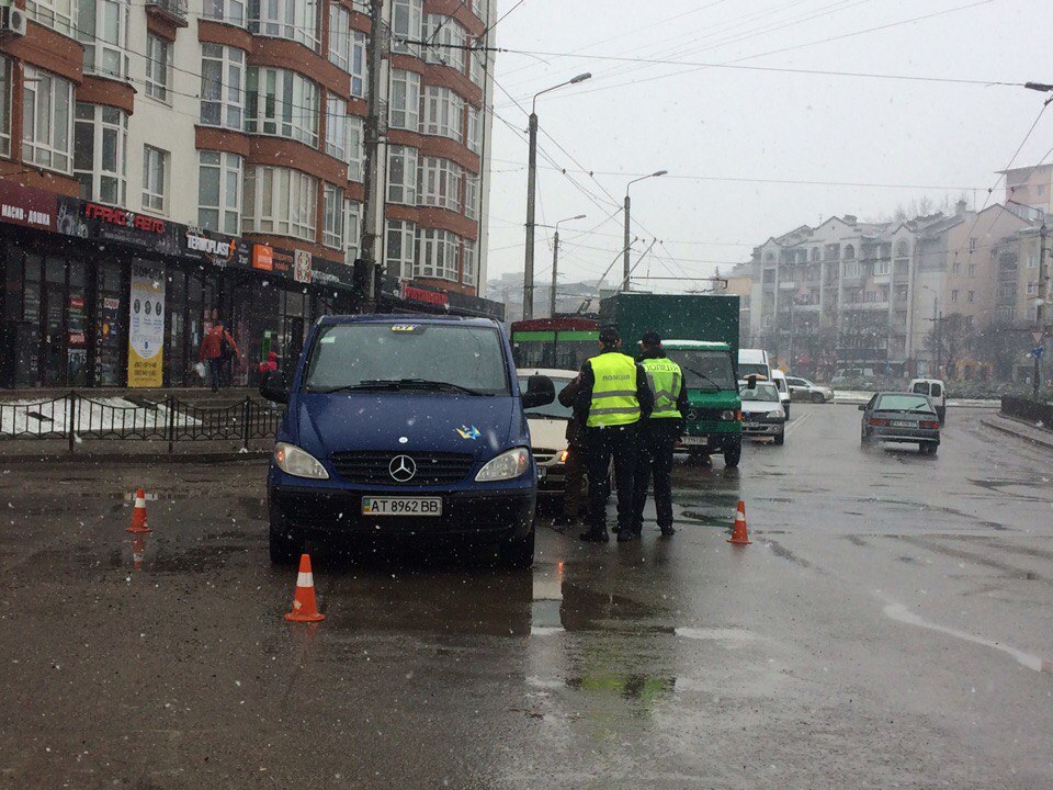 Зранку в Івано-Франківську сніжило. Складні погодні умови вплинули і на безпеку руху, що спричинило два ДТП.
