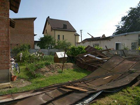 В селищі Отинія Коломийського району зірвано 50% шиферного покриття з даху 5-ти поверхового житлового будинку, пошкоджено крівлі окремих приватних будівель, кількість встановлюється.