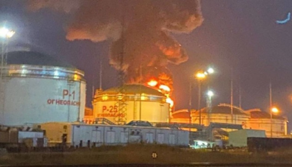 У Краснодарському краї біля порту Тамань, неподалік від окупованого Криму, сталася пожежа на нафтовій базі.