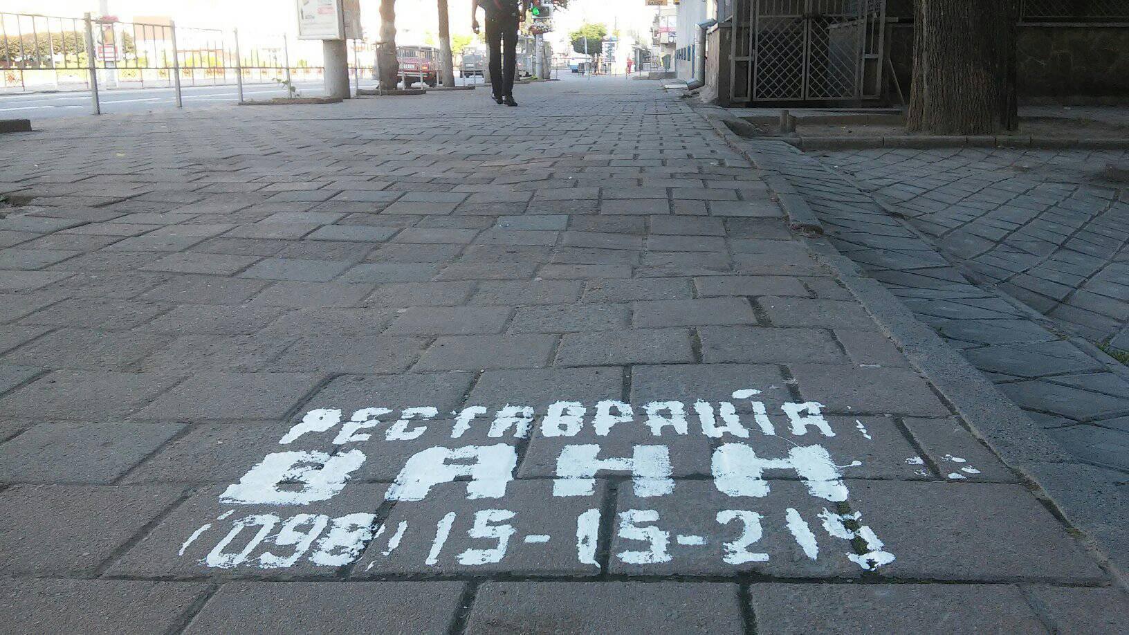 Рекламні написи на пішохдіній зоні з'явились на вулиці Незалежності в ніч з суботи на неділю. Також написи про "реставрацію ванн" за минулі вихідні з'явились і на інших вулицях середмістя.