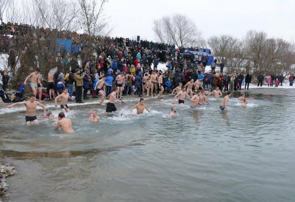 Вже другий рік поспіль на березі Бистриці у Франківську проходить освячення води. Громади, які проживають поблизу прийшли сьогодні на річку освятити воду. Після чину освячення, всі бажаючі мали змогу занурились у крижану, проте цілющу воду.
