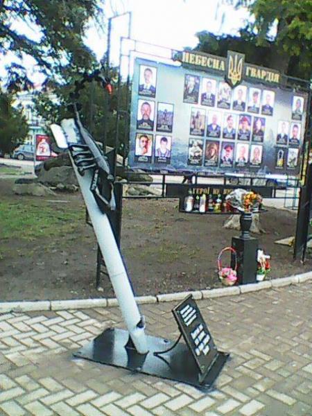 Скорпіон з снарядів на ракеті з "БУКа", що застрягла у землі. Такий незвичний пам'ятний знак встановили у прикарпатському містечку.