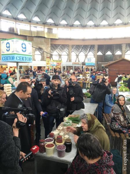 Сьогодні, 15 квітня, на центральному ринку Івано-Франківська міський голова Руслан Марцінків зустрівся з бізнесменом Ігорем Халамендою та продавцями.