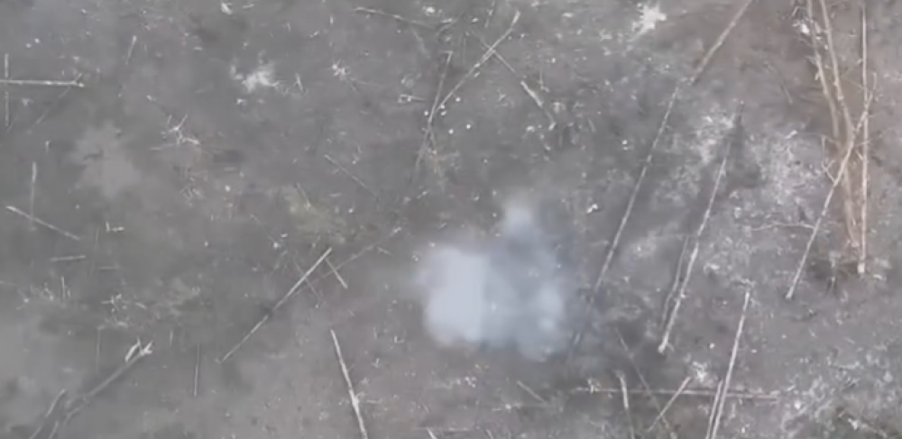 На опублікованих військовими кадрах можна побачити, як ворожий солдат намагається врятуватися та намотує кола біля своїх траншей. Врешті-решт він втомлюється й у відчаї підриває себе гранатою.