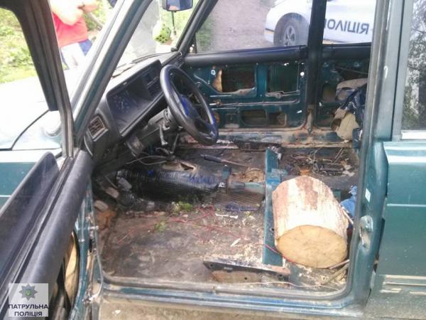 Патрулючи вулиці Івано-Франківська, на Пасічній увагу патрульних привернув зелений автомобіль ВАЗ, який їхав без номерних знаків. І не лише - на авто не було ні поворотів, ні фар. У салоні - також скромно, водій сидів на дерев'яному ковбані, інформує прес-служба патрульної поліції.