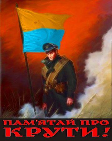 Із пензлями та фарбою в руках взялися відзначати 96-ту річницю бою під Крутами місцеві пластуни. Просто неба на барикадах розгорнули гігантську тканину та закликали перехожихгуртом відтворити історичний малюнок.
