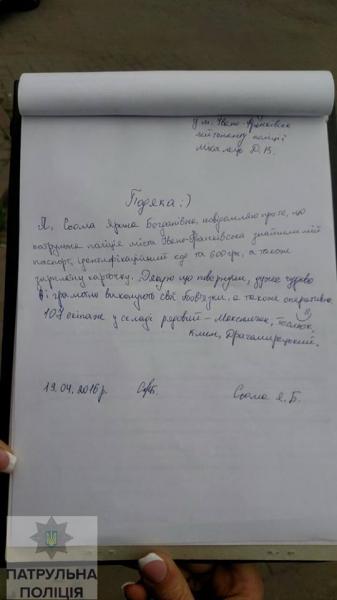Ярина Сьома написала патрульним подяку за те, що вони повернули їй загублені документи і гроші.