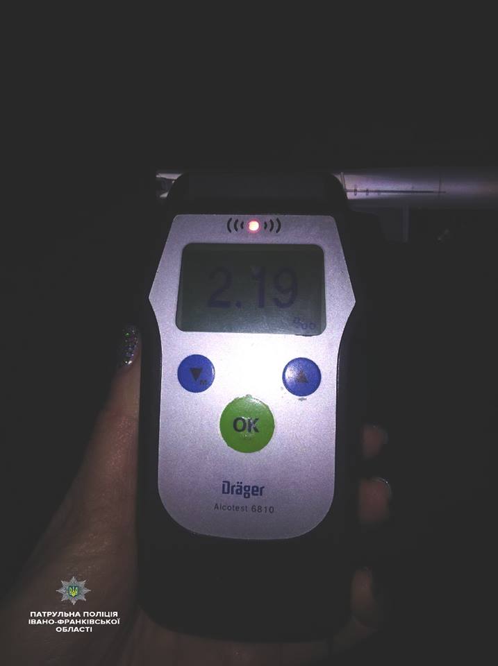 На вулиці Бандери патрульні поліцейські виявили автомобіль з орієнтування та зупинили його. За кермом сидів 21-річний водій - алкотестер показав 2,19 проміле алкоголю у його крові.