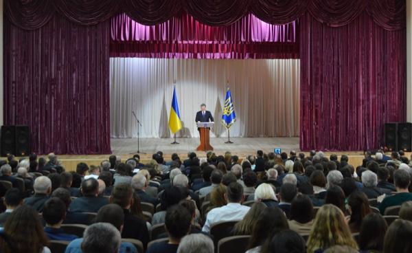 На вході його оплесками зустріли студенти навчального закладу. Серед них були й такі, що намагались поскаржилися Порошенку на ту чи іншу проблему, інформує кореспондент Бліц-Інфо.