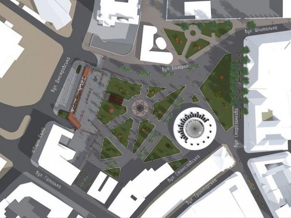 Тож пропонує заборонити забудову Тринітарської площі, перенести існуючий ринок за межі міста, та облаштувати на його місці зелену зону за таким проектом.