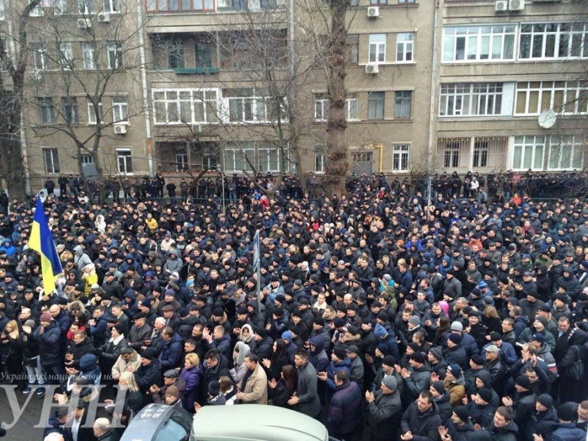 Як повідомляє кореспондент «Укрінформу», загалом під міністерством зібралося близько 1,5 тисячі правоохоронців, частина з них – люди, які не пройшли переатестацію, а частина – переатестовані, що прийшли підтримати своїх колег.