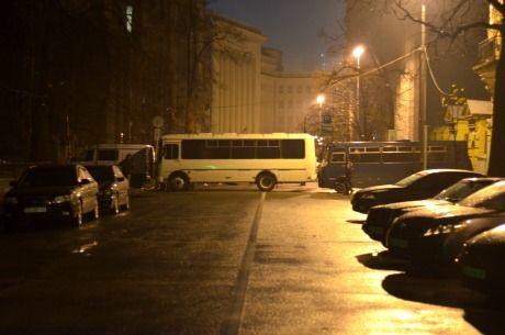Як повідомляє кореспондент "Української правди", зокрема три автобуси знаходяться на Банковій зі сторони вулиці Інституської.