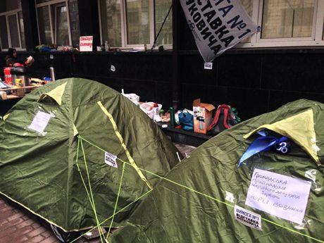 До активістів з Євромайдану, які пікетують будівлю Генпрокуратури, завітали судові виконавці та оголосили постанову про заборону проведення мирних зборів