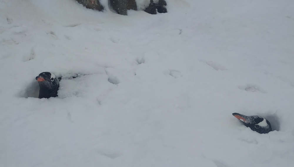 Біля української станції "Академік Вернадський" в Антарктиді намело рекордну кількість снігу. Кучугури намело такі, що пінгвіни, яки висиджують яйця, опинилися по саму голову у снігу.
