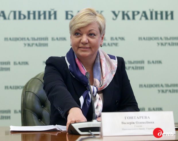 «Нам дісталася країна з величезними накопиченими макроекономічними дисбалансами... Потім була анексія Криму, потім - справжня кривава війна на Донбасі», - перераховувала Гонтарєва дестабілізуючі фактор. Через це, за її оцінками, реальне падіння ВВП України в 2014 році сягне майже 7,5%, гривня знецінилася майже вдвічі, інфляція за січень-листопад виросла до 21,2%, з банківської системи «втекло» 126 мільярдів гривень депозитів.
