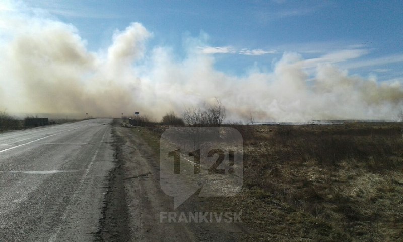 На світлинах видно, що пожежа поширилась на велику територію, а дим окутав навіть дорогу.