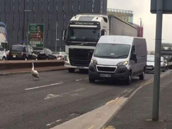 Близько 10 ранку птах на певний час паралізував рух однієї з магістралей міста, бо неспішно прогулювався нею. Водії авто повільно їхали за ним. Птаху натомість було хочби-що.