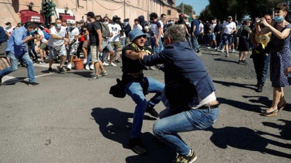 Мітинг італійських ультраправих екстремістів та футбольних фанатів у Римі переріс у сутички в суботу.