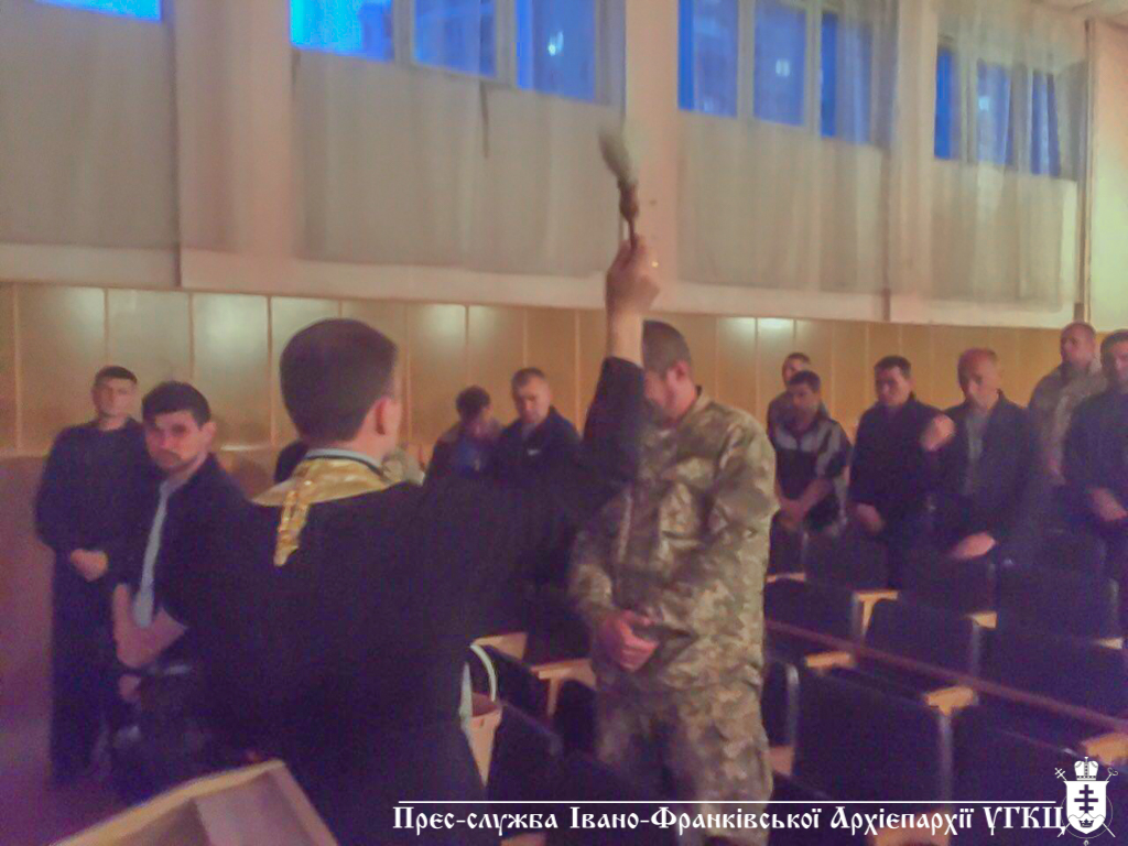 З молитвою, настановами та Божим благословенням до військових звернувся о. Ярослав Рожак, капелан обласного комісаріату. Окропивши всіх свяченою водою, священнослужитель звернувся до бійців з повчальним словом-підтримкою.