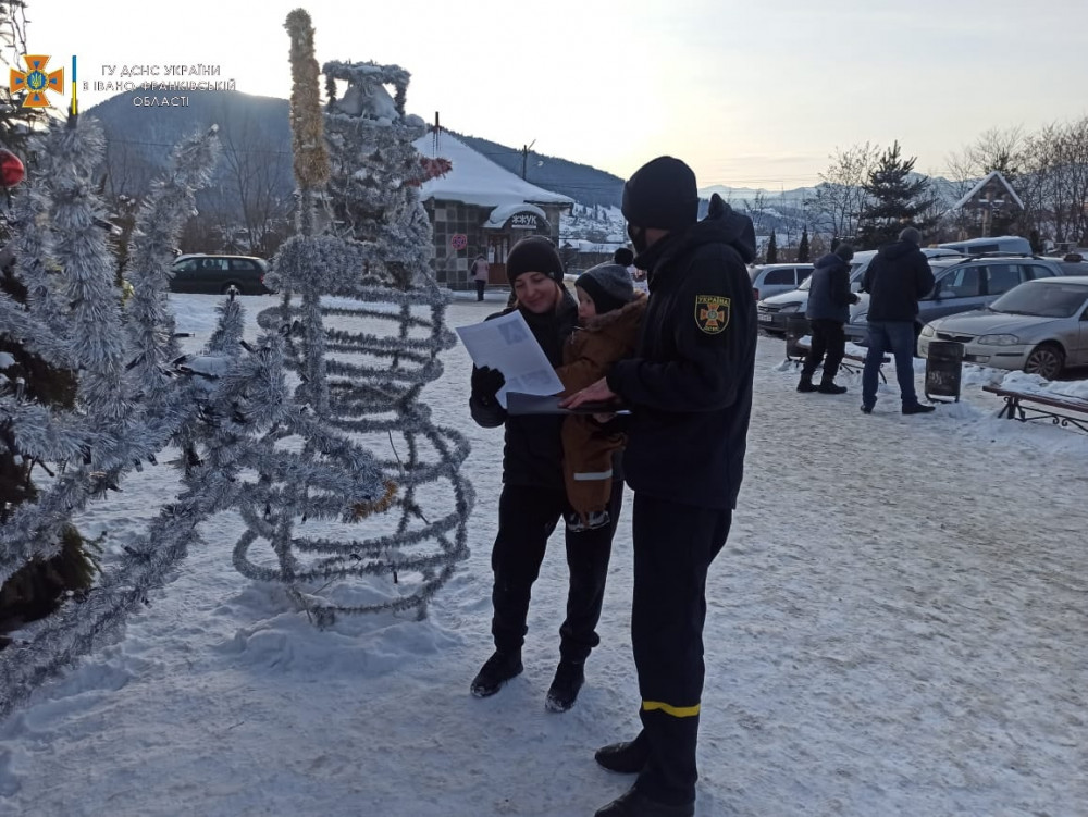 Тож напередодні святкових днів інспектори Служби порятунку проводять інформативні бесіди про небезпеку, яку приховують у собі «салюти», зі школярами у всіх регіонах країни. Зокрема, фахівці Надвірнянського РУ ГУ ДСНС України в Івано-Франківскій області та Верховинського РВ Головного Управління ДСНС в області в області, провели профілактичні бесіди з місцевими мешканцями щодо дотримання правил пожежної безпеки у побуті, правил використання електричних приладів та при експлуатації пічного опалення, а також про безпечне користування піротехнічними виробами .