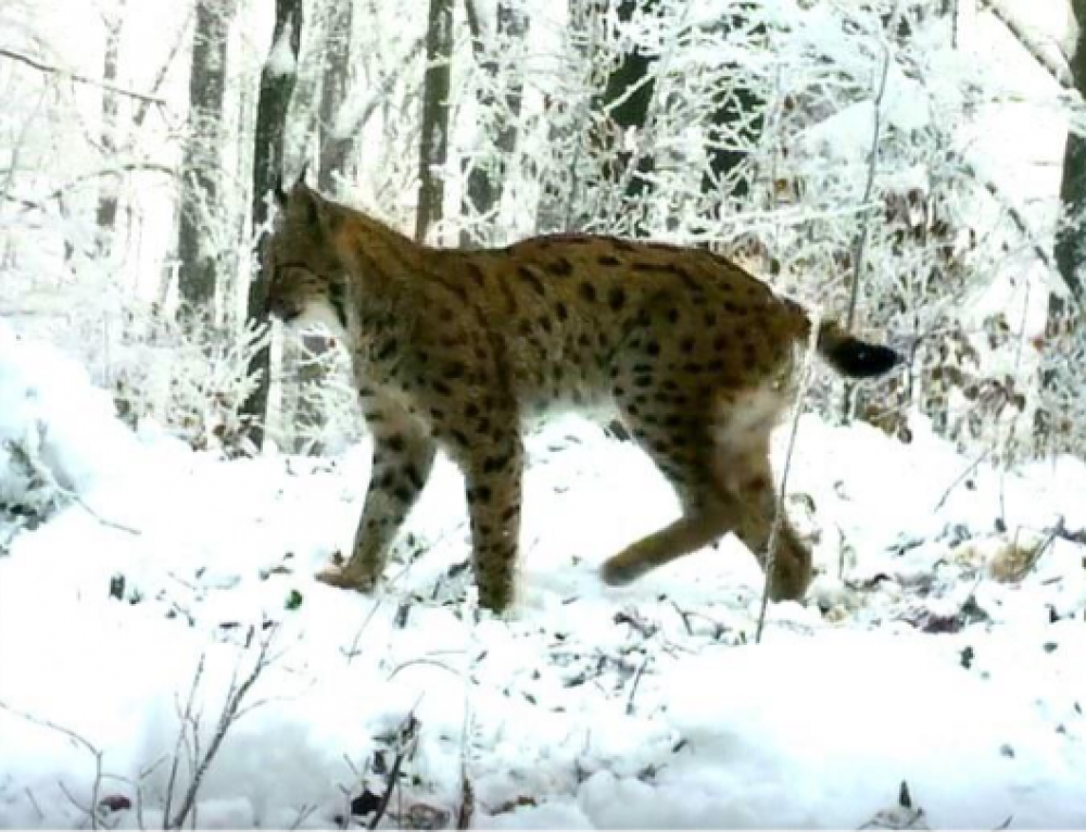 На фото: Активний самець рисі ID-4 досліджує територію Ужанського НПП взимку 2025-2026 (@ WWF-Україна)
