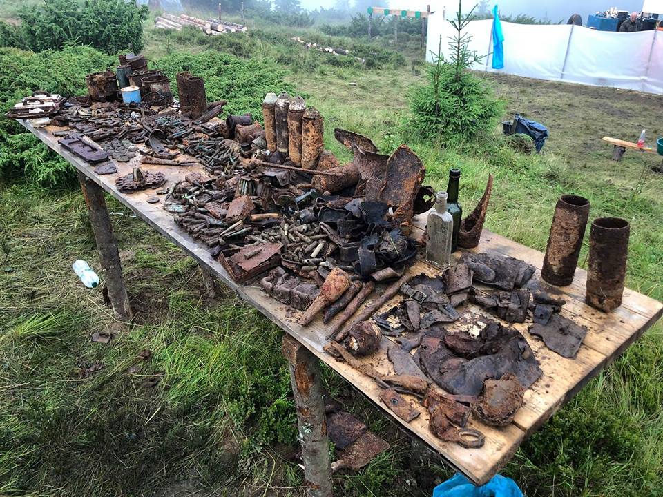 - Учасників експедиції було розділено на три пошукові групи: «Карпати», «Захід», «Обеліск» згідно раніше визначених локацій, де під час попередніх розвідок були виявлені сліди боїв і загиблі військові обох протиборчих армій, – каже керівник експедиції Ярослав Жилкін. – Зібравши все необхідне для проведення робіт, запасшись сухпайком, групи з табору на полонині Луковиці відправилися на робочі локації. Результати пошуку не змусили себе довго чекати. Першого таки дня дві групи виявили невідомі захоронення. До кінця робочого дня ще одна група виявила останки загиблих солдатів.