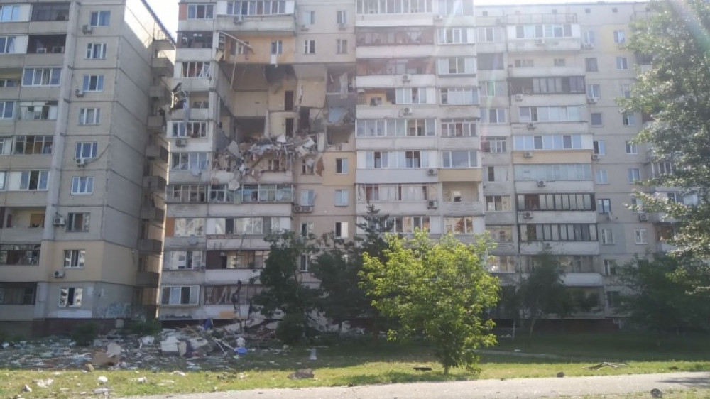 Вибухом зачепило поверхи з четвертого по восьмий. Руйнування – з обох сторін багатоповерхівки. Фасадна стіна будинку опинилася під загрозою обвалу.