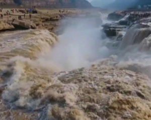 Водоспад Хукоу на річці Хуанхе в Китаї перетворився на видовищний каскад водоспадів завдяки скресанню криги.