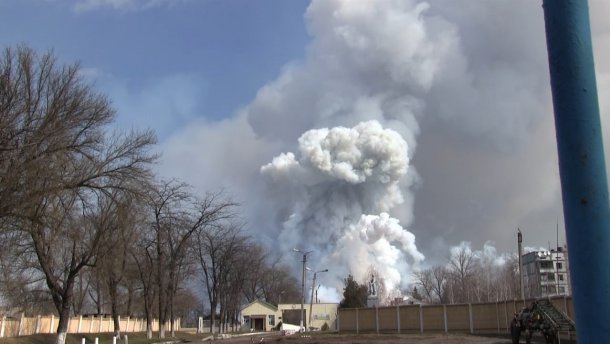 У Міноборони кажуть, що вибух на військових складах під Харковом міг статися через підрив з безпілотника.