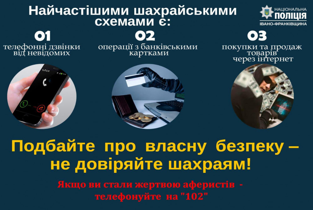 Про будь-який факт чи спробі шахрайства повідомляйте на «102».