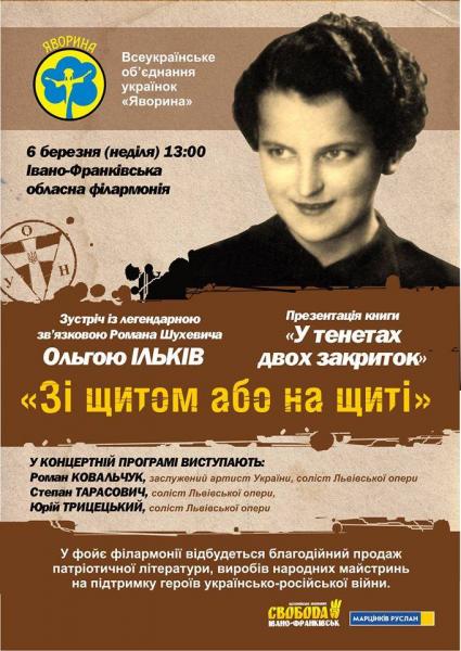 У неділя, 6 березня о 13:00 відбудеться зустріч з легендарною зв'язковою Романа Шухевича, презентація книги "У тенетах двох закриток" та благодійний продаж патріотичної літератури.