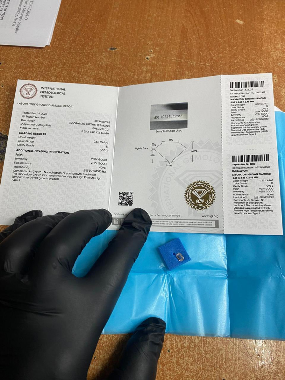 Вага каміння, вирощеного в лабораторних умовах, становить 1.30, 0.52, 0.42 карати, а вартість - понад 200 тис. гривень.