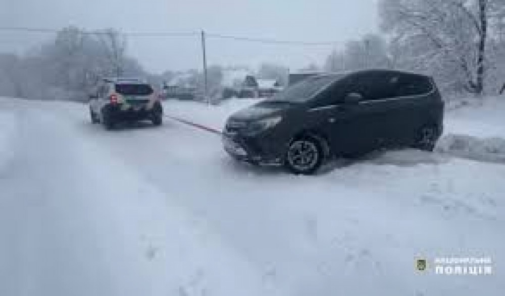 Прикарпатські поліцейські допомагають водіям вибратися зі снігових пасток