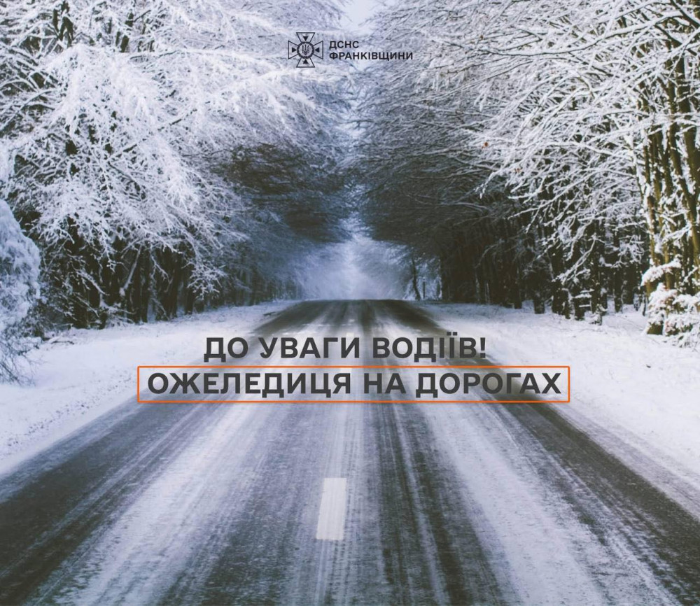Як повідомили в обласному управлінні ДСНС, протягом доби 25 грудня на дорогах утримається ожеледиця. (І рівень небезпечності, жовтий).