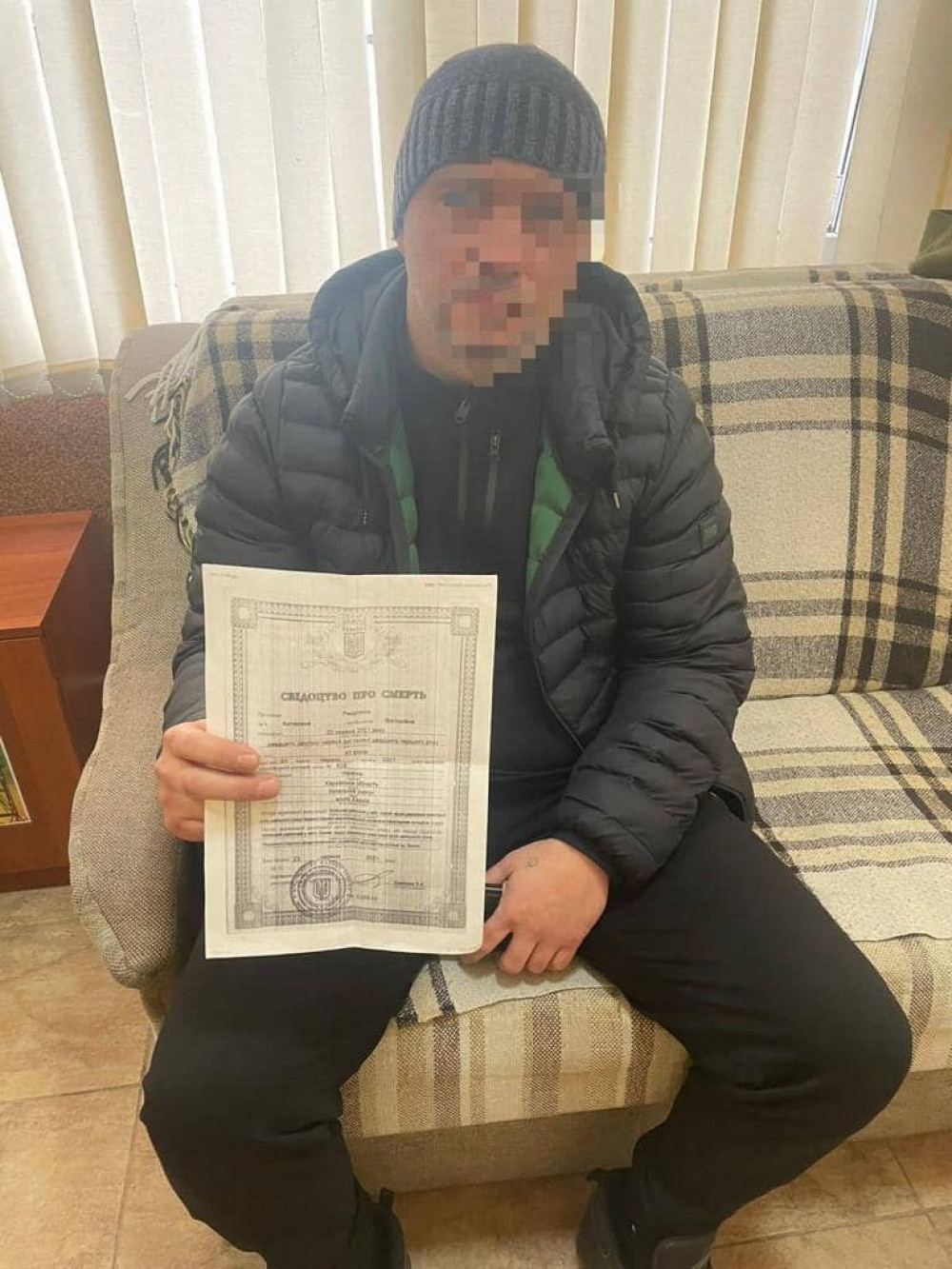У копії «свідоцтва про смерть» будо зазначено «смерть» дружини у червні 2021 року. Однак під час перевірки встановлено, що після «смерті», у серпні 2021 року, жінка двічі перетинала державний кордон та літала відпочивати з родиною до Єгипту.