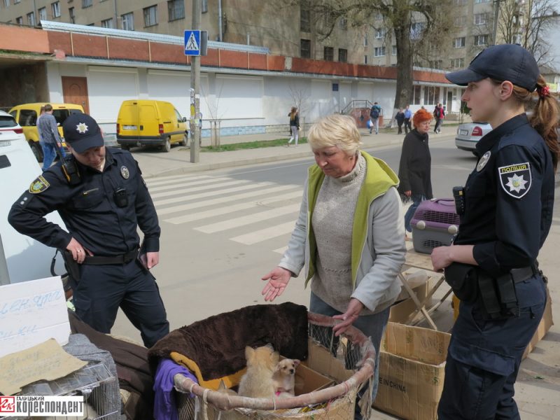 Зауважимо, що тваринами торгують у місці, яке для цього спеціально не відведене. Але скласти протокол за ст. 152 КУаАП (порушення державних стандартів, норм і правил у сфері благоустрою населених пунктів, правил благоустрою територій) патрульна поліція не може, бо це стосується продажу продовольчих і промислових товарів, але не тварин. Відтак цим має займатися міськвідділ поліції, слідчі якого можуть розглядати такі справи, зокрема, у рамках ст. 299 ККУ (жорстоке поводження з тваринами).