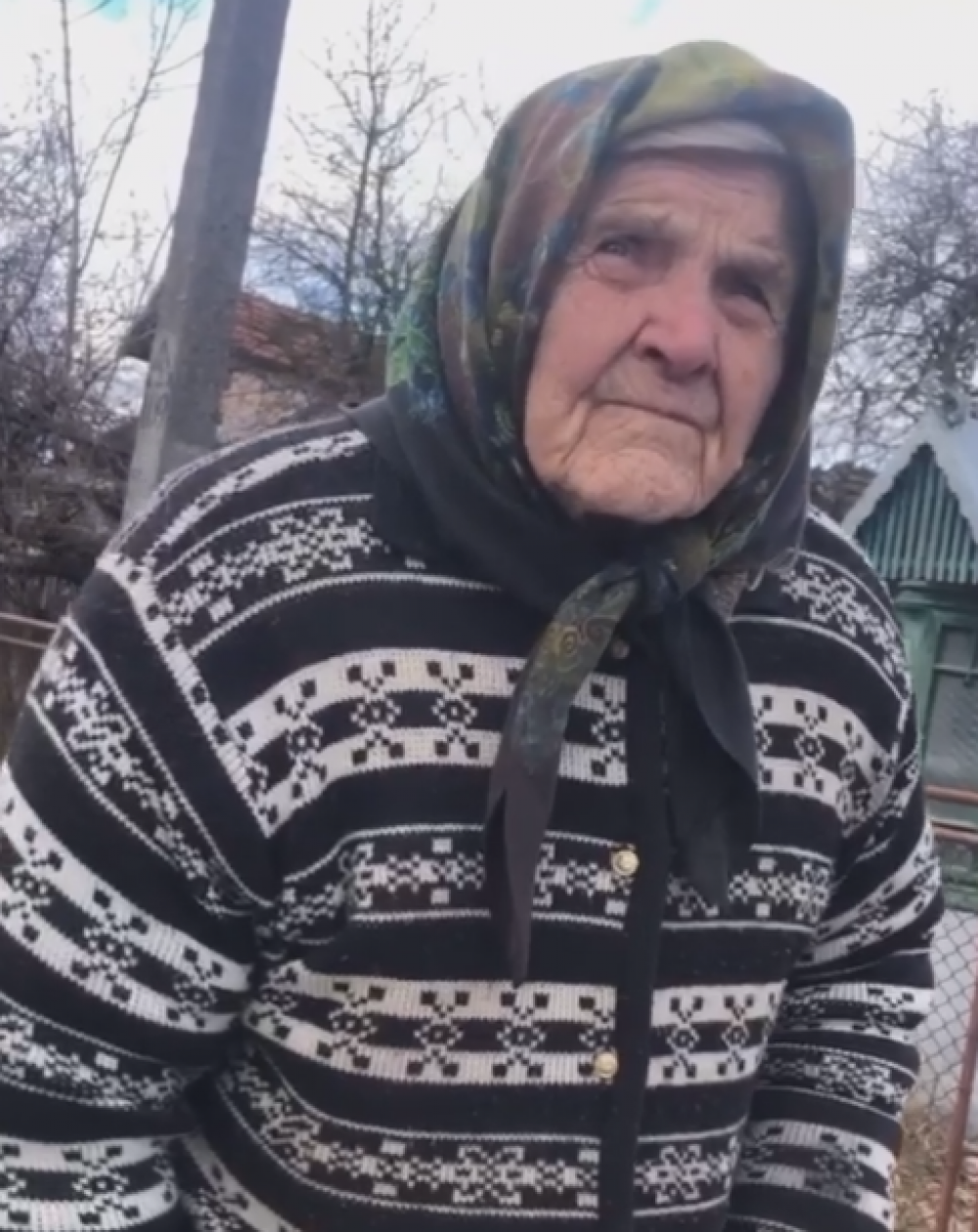 "Мандебурки(картоплі - ред) нема, макарону нема, є вода та й баняки. Пенсію син бере і мені нічого не купляє. То такий син, що піде в місто і там наїсться, а я потім кажу: "та ж я голодна", а він відповідає: "лягай і спи".