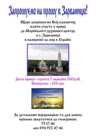 Молодіжна комісія Івано-Франківської Архієпархії УГКЦ запрошує усіх бажаючих 7 березня 2015 року Божого взяти участь у прощі до Марійського духовного центру в с.Зарваниця в наміренні за мир в Україні