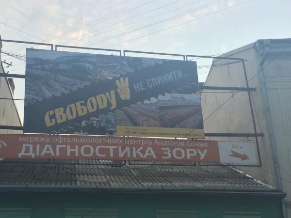 27 травня у місті Коломиї, що на Івано-Франківщині з'явився бігборд, на якому незаконно використано логотип ВО «Свобода». А сам бігборд, на переконання місцевих свободівців, дискредитує політичну силу.
