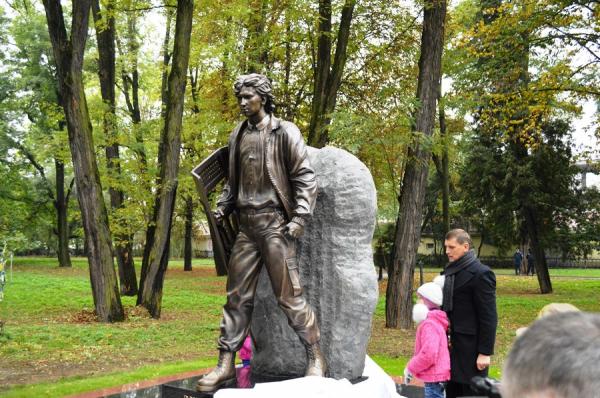 "Ідея пам'ятника полягає у тому що Роман ніби зображений після смерті. Він уже перетворюється в ангела який буде спостерігати за нами і охороняти нас. Коли я робив сам пам'ятник до мене в майстерню прилетів великий голуб і сидів там три дні, поки ішла робота. Я вважаю, що це було дуже символічно", - каже скульптор.
