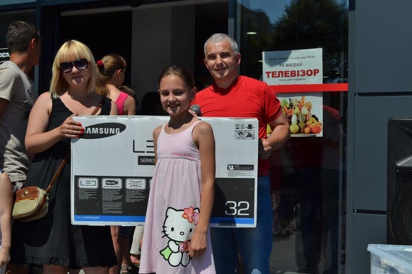 Якраз минулої неділі і відбувся очікуваний розіграш. Сотні мешканців Пасічної стали свідками того, як з легкої руки маленької красуні-помічниці організаторів двадцять покупців стали щасливими володарями різноманітних подарунків – продуктових комплектів, наборів посуду, побутової техніки тощо. А головним переможцем стала пані Наталя, якій дістався головний приз – великий сучасний телевізор! Як бачимо, часом після відвідин продуктового магазину в домівку можна принести не лише харчі, а й навіть телевізор.