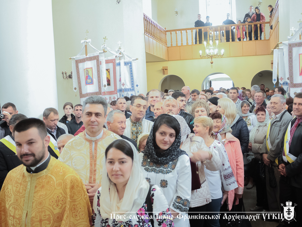 Розпочалися спільні моління молебнем до Пресвятої Богородиці перед чудотворною іконою. Далі віряни, на подвір’ї храму Успіння Пресвятої Богородиці, зустрічали Преосвященного Владику Йосафата Мощича, Єпископа-помічника Івано-Франківської Архієпархії.