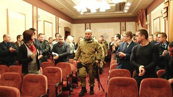 Зустрічати наших захисників прийшли керівники обласного управління міліції та колеги по службі.